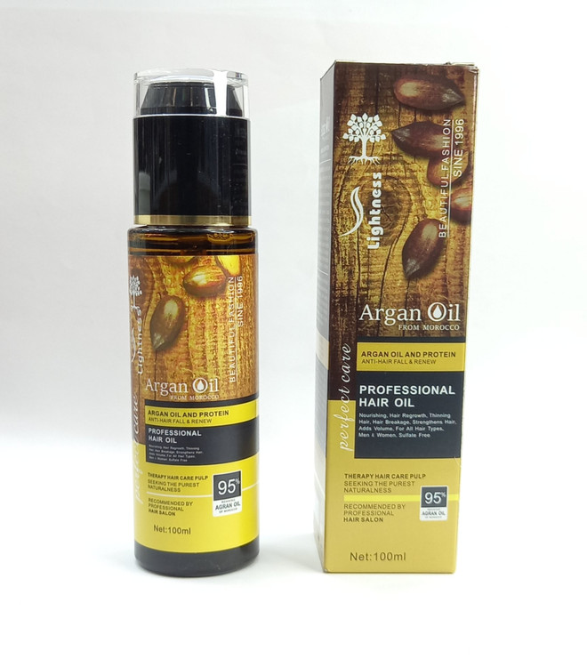 روغن آرگان لایتنس حاوی 95 درصد روغن آرگان طبیعی در ترکیبات خود است. که باعث نرمی و لطافت بافت مو شده و ساقه مو را تقویت می کند. روغن آرگان از خواص فوق العاده ای برخوردار است از جمله اینکه، باعث درخشان شدن و شادابی بافت مو می شود. وزی و خشکی را از بین برده و از ایجاد موخوره و شکنندگی نیز جلوگیری میکند. روغن آرگان حاوی مقادیر زیادی اسید چرب و ویتامین E است که باعث تقویت و سلامت ساختار مو شده و موهایی سالم و زیبا را به ارمغان می آورد. روغن آرگان لایتنس، بدون سولفات است بنابراین از موها به خوبی مراقبت و محافظت کرده و موهایی درخشان را به شما می بخشد. همچنین بخاطر نداشتن سولفات موهای کراتینه به راحتی میتوانند از آن استفاده کنند. روغن آرگان لایتنس رطوبت مو را حفظ کرده و از ریزش مو جلوگیری میکند