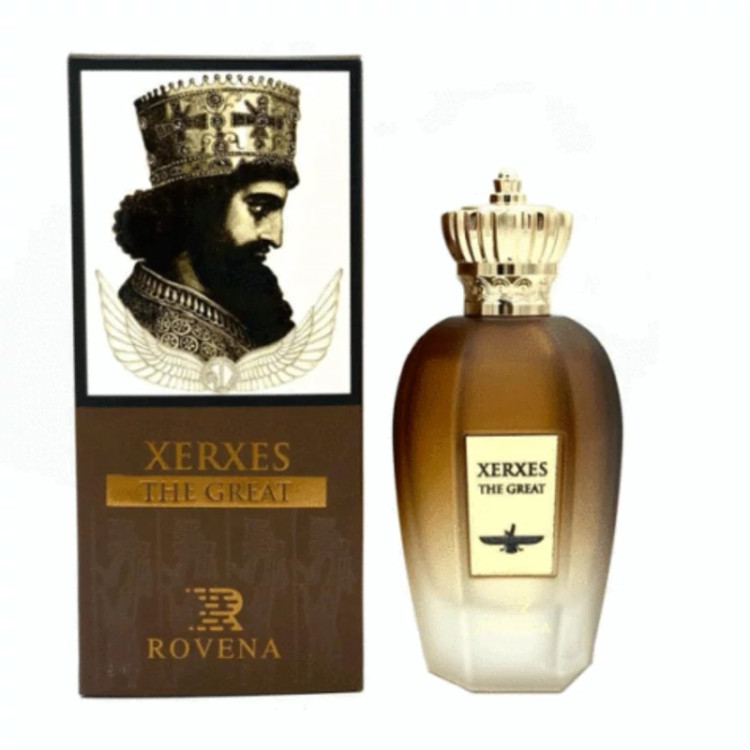 عطر مردانه خشایار شاه بزرگ برند شرکت روونا حجم ۱۰۰ میل رایحه خنک و تلخ مشابه بوی کرید اونتوس